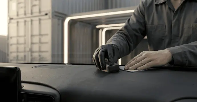 Miami's sun destroys interiors. We meticulously clean all plastics, vinyl, and rubber surfaces with ph-balanced cleaners. We then apply a premium, non-greasy conditioning treatment from RYP Lab that restores the natural matte finish and provides lasting UV protection to prevent cracking and fading.